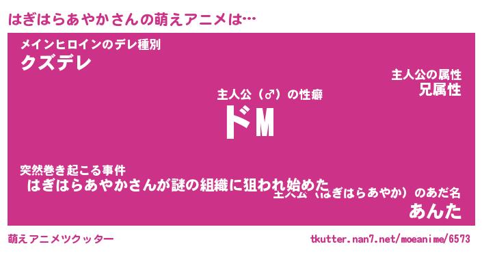| 女子向けラノベタイトル風あだ名 | 『(仮)はぎはらあやかのやんごとなき事情』 |