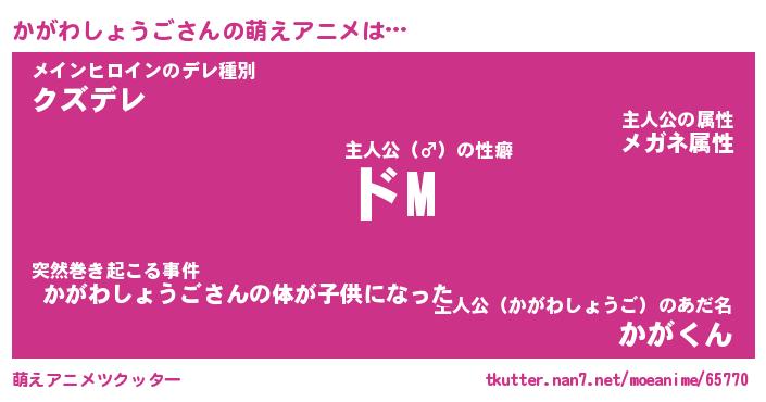 | 男性向けラノベタイトル風あだ名 | 『かがわしょうごの憂鬱』 |