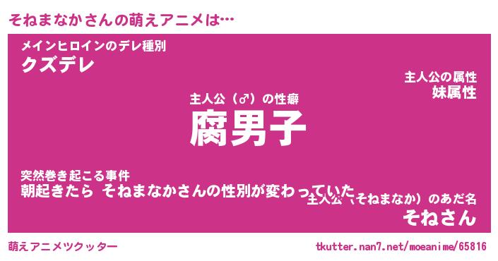 | 男性向けラノベタイトル風あだ名 | 『ソネマナカアートオンライン』 |