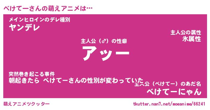 | ヘコむあだ名 | 『べけにゅー』『豆乳』『べけっぺ』 |