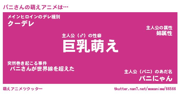 | 男性向けラノベタイトル風あだ名 | 『パニの憂鬱』『ノーゲーム・ノーパニ』 |
