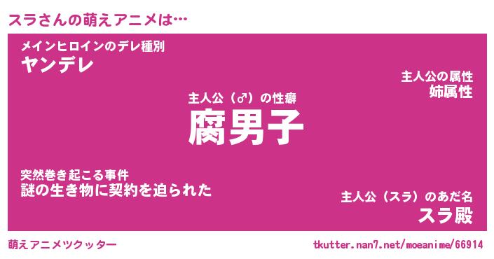 | 女子向けラノベタイトル風あだ名 | 『スラ姫と円卓の騎士』『スラ様がみてる』 |