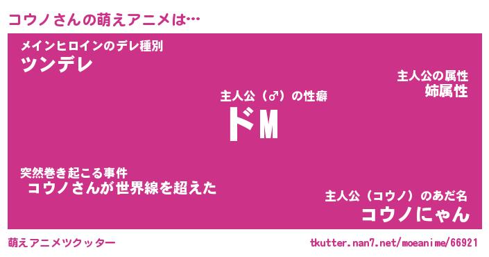 | 男性向けラノベタイトル風あだ名 | 『コウノの憂鬱』 |
