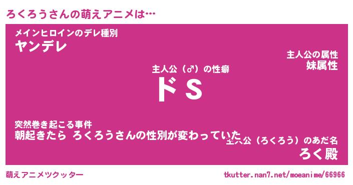 | 男性向けラノベタイトル風あだ名 | 『ろくろうの憂鬱』 |