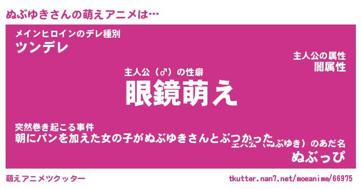 | 男性向けラノベタイトル風あだ名 | 『ぬぶゆきの憂鬱』 |