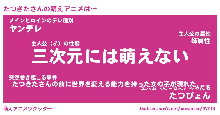 | 男性向けラノベタイトル風あだ名 | 『タツキタアートオンライン』 |