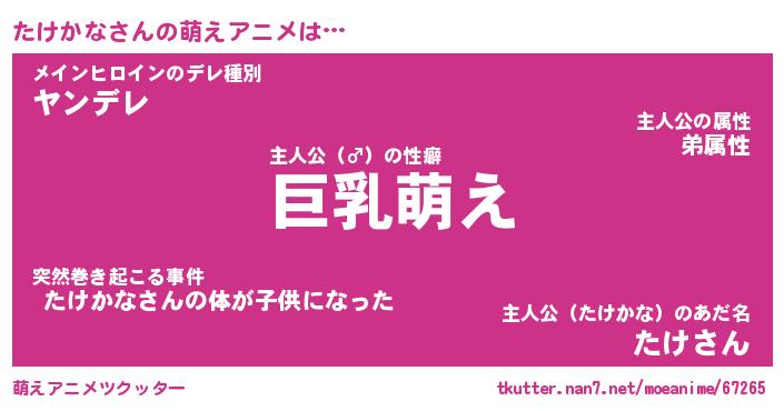 | 男性向けラノベタイトル風あだ名 | 『たけかなの憂鬱』 |