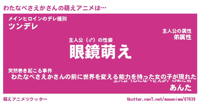 | 男性向けラノベタイトル風あだ名 | 『わたなべさえかの憂鬱』 |