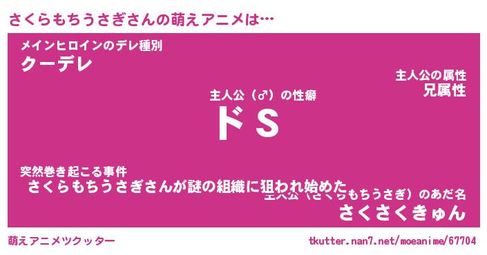| 男性向けラノベタイトル風あだ名 | 『さくらもちうさぎの憂鬱』 |