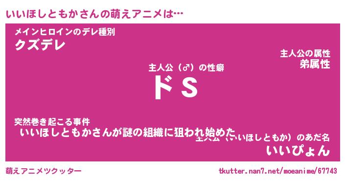 | 男性向けラノベタイトル風あだ名 | 『いいほしともかの憂鬱』 |