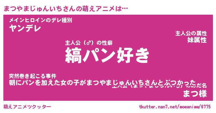 | 女子向けラノベタイトル風あだ名 | 『(仮)まつやまじゅんいちのやんごとなき事情』 |