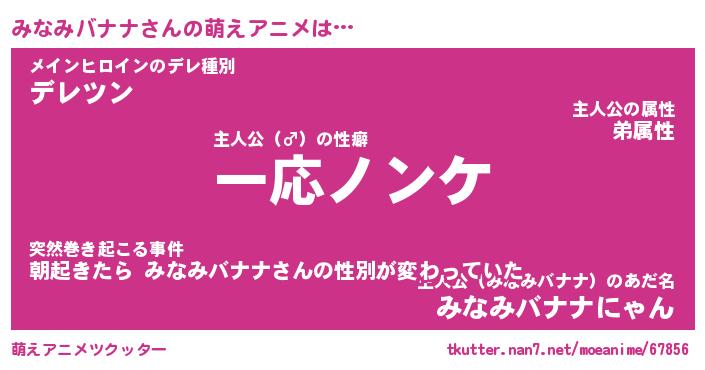| 女子向けラノベタイトル風あだ名 | 『誰かこのみなみバナナを説明してください! ~契約から始まるウェディング~』 |