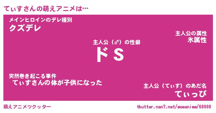 | 男性向けラノベタイトル風あだ名 | 『てぃすの憂鬱』 |