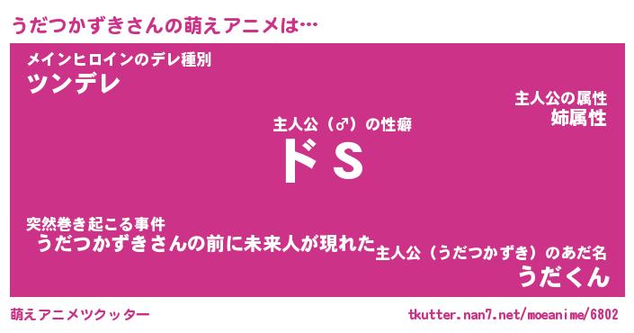 | 男性向けラノベタイトル風あだ名 | 『うだつかずきの憂鬱』 |