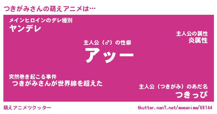| ファンタジー風あだ名 | 『ツキフェル』『エターナルツキガミー』 |