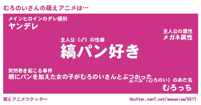 | 男性向けラノベタイトル風あだ名 | 『むろのいの憂鬱』 |