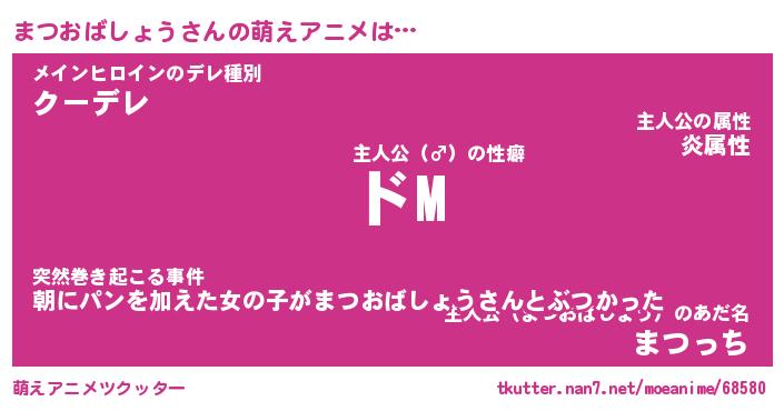 | 女子向けラノベタイトル風あだ名 | 『(仮)まつおばしょうのやんごとなき事情』 |
