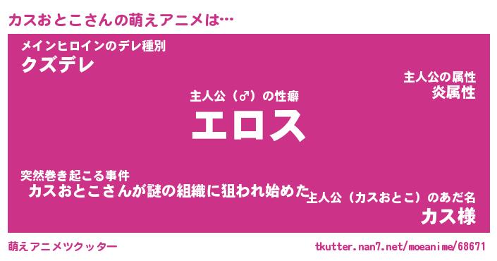 | 男性向けラノベタイトル風あだ名 | 『カスオトコアートオンライン』 |
