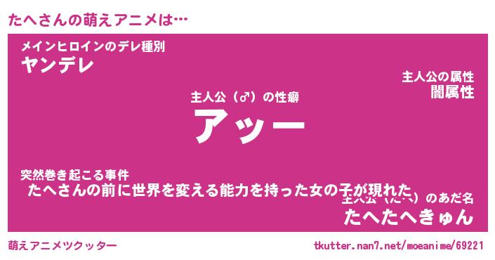 | 男性向けラノベタイトル風あだ名 | 『タヘアートオンライン』 |