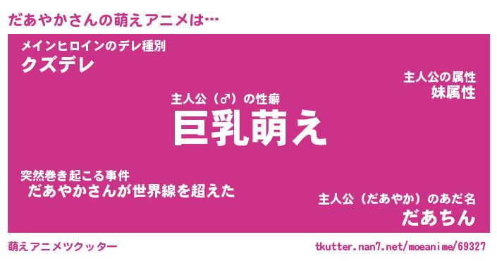 | 男性向けラノベタイトル風あだ名 | 『だあやかの憂鬱』 |