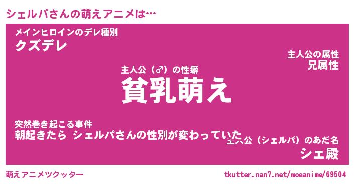 | 男性向けラノベタイトル風あだ名 | 『シェルパの憂鬱』 |