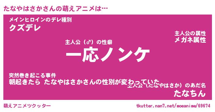 | 男性向けラノベタイトル風あだ名 | 『タナヤハサカアートオンライン』 |