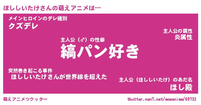 | ヒーロー風カッコイイあだ名 | 『スーパーホシシイタケ』『幻影騎士ホシ』 |