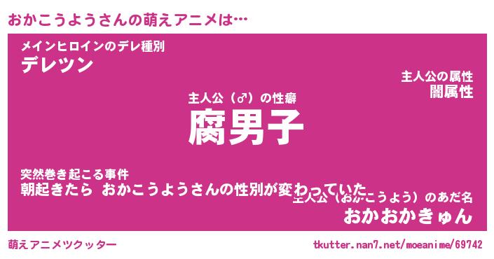 | 男性向けラノベタイトル風あだ名 | 『オカコウヨウアートオンライン』 |