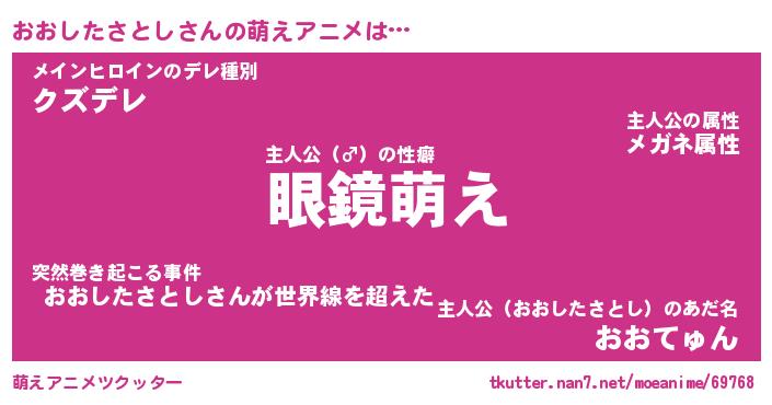 | 男性向けラノベタイトル風あだ名 | 『おおしたさとしの憂鬱』 |