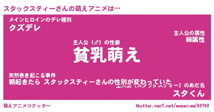 | 男性向けラノベタイトル風あだ名 | 『スタックスティーの憂鬱』 |