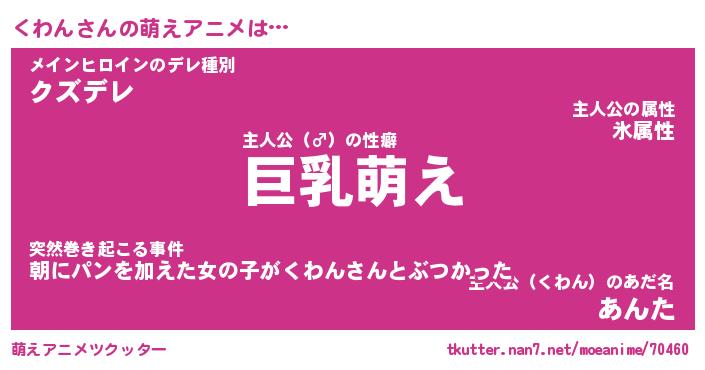 | 男性向けラノベタイトル風あだ名 | 『くわんの憂鬱』 |
