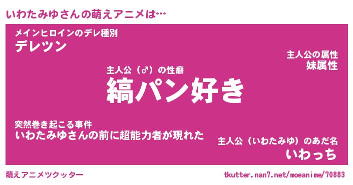 | 女子向けラノベタイトル風あだ名 | 『(仮)いわたみゆのやんごとなき事情』 |