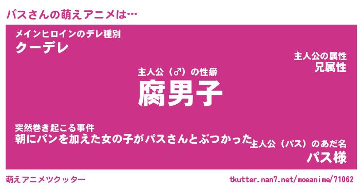 | 男性向けラノベタイトル風あだ名 | 『パスアートオンライン』 |
