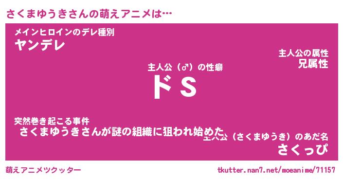 | 女子向けラノベタイトル風あだ名 | 『(仮)さくまゆうきのやんごとなき事情』 |