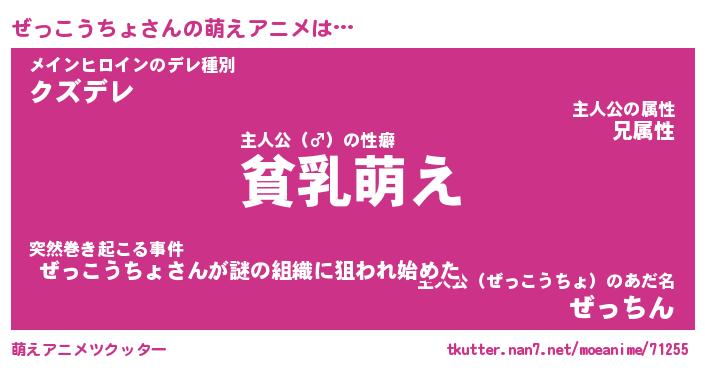 | 男性向けラノベタイトル風あだ名 | 『ぜっこうちょの憂鬱』 |