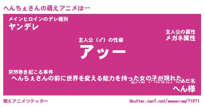 | 男性向けラノベタイトル風あだ名 | 『ヘンチェアートオンライン』 |