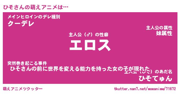 | 男性向けラノベタイトル風あだ名 | 『ヒソアートオンライン』 |