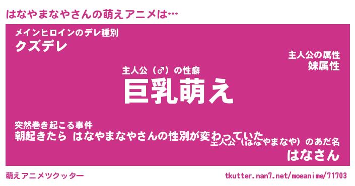 | 男性向けラノベタイトル風あだ名 | 『はなやまなやの憂鬱』 |