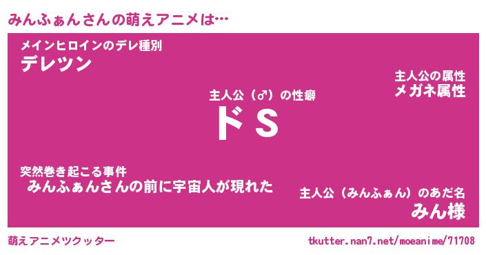 | 男性向けラノベタイトル風あだ名 | 『みんふぁんの憂鬱』 |