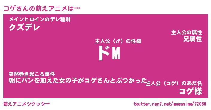 | 女子向けラノベタイトル風あだ名 | 『(仮)コゲのやんごとなき事情』 |