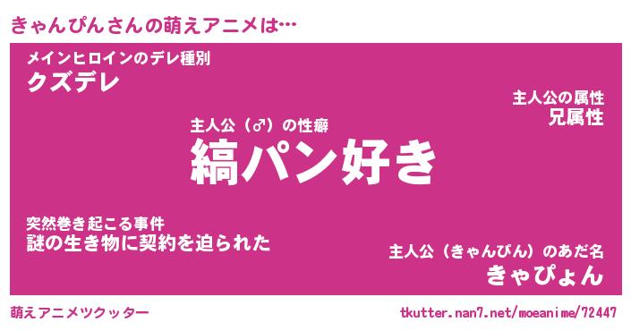 | 男性向けラノベタイトル風あだ名 | 『きゃんぴんの憂鬱』 |