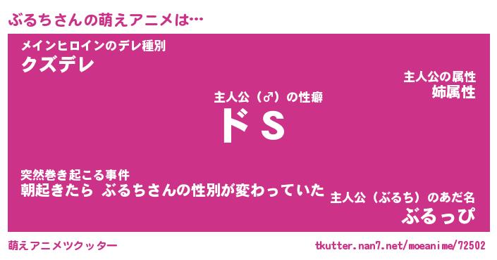 | 女子向けラノベタイトル風あだ名 | 『(仮)ぶるちのやんごとなき事情』 |