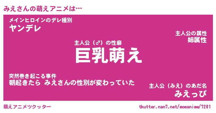 | 男性向けラノベタイトル風あだ名 | 『みえの憂鬱』『ノーゲーム・ノーミエ』 |