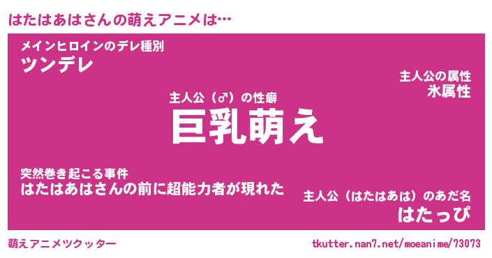 | 男性向けラノベタイトル風あだ名 | 『はたはあはの憂鬱』 |