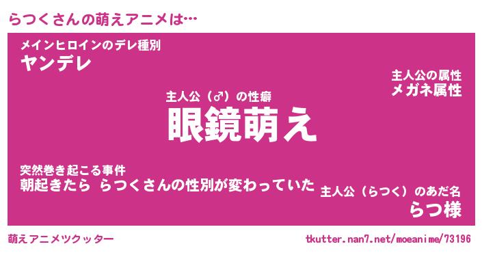 | 男性向けラノベタイトル風あだ名 | 『らつくの憂鬱』 |