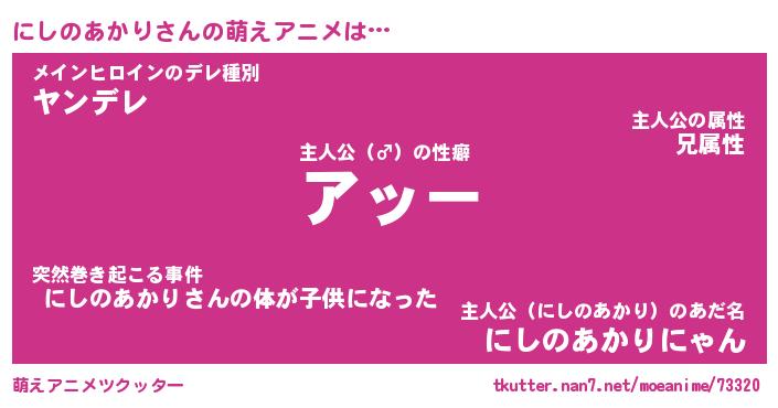 | 女子向けラノベタイトル風あだ名 | 『誰かこのにしのあかりを説明してください! ~契約から始まるウェディング~』 |