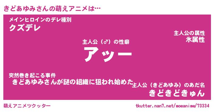 | 男性向けラノベタイトル風あだ名 | 『キドアユミアートオンライン』 |