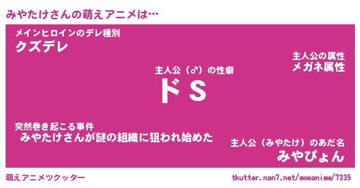 | 男性向けラノベタイトル風あだ名 | 『みやたけの憂鬱』 |