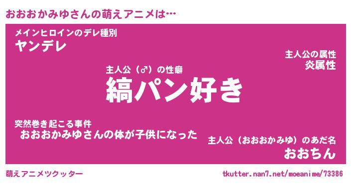| 女子向けラノベタイトル風あだ名 | 『(仮)おおおかみゆのやんごとなき事情』 |