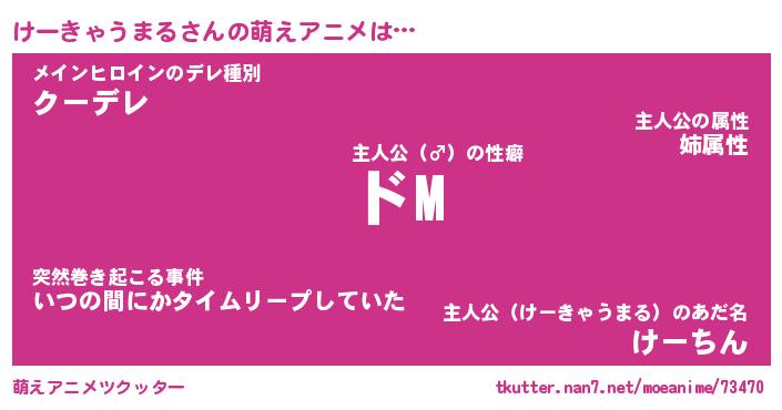 | 男性向けラノベタイトル風あだ名 | 『けーきゃうまるの憂鬱』 |